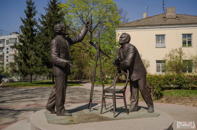 On a corner where Ulitsa Tsiolkovskogo and Ulitsa Akademika Koroleva meet, there is a monument which depicts an imagined meeting between the streets' namesakes: Konstantin Tsiolkovsky, the founding father of Russian theoretical cosmonautics and Sergei Korolev, the founding father of Russian practical cosmonautics.