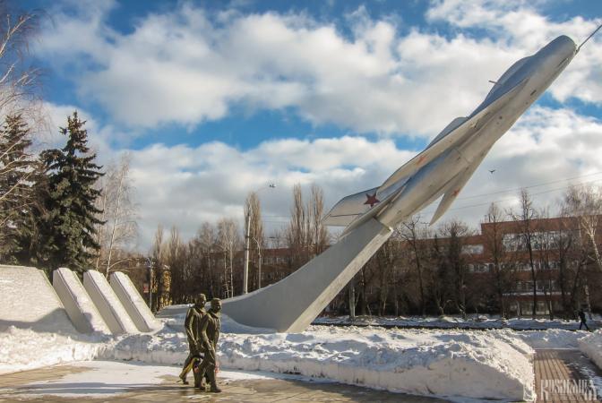 Further along Ulitsa Gagarina is Ploschad Aviatorov (Aviators Square) which is dominated by a monument comprising a MiG-19 on a pedestal. Next to the MiG are statues of two pilots from the Lipetsk Airbase - Sergey Sherstobitov and Leonti Krivenkov. These pilots are considered heroes as when the plane they were flying caught fire, instead of saving themselves by ejecting, they sacrificed their lives to divert the plane away from a populated area to avoid a greater tragedy.