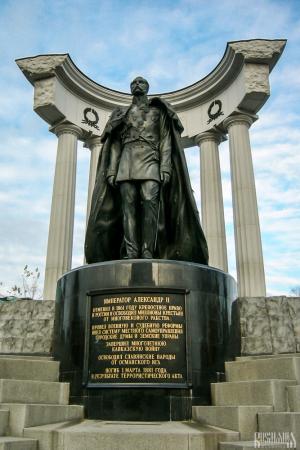 Located in the park next to the Christ the Saviour Cathedral is a monument to Emperor Alexander II. The monument was unveiled in 2005. The pedestal reads "Abolished Serfdom in 1861 and freed millions of peasants from many centuries of slavery. Carried out military and legal reforms. Introduced a system of local self-government, city dumas and zemstvo boards. Ended the long Caucasian War. Freed Slavic people from the Ottoman Yoke. Died on 1 (13) March 1881 as a result of a terrorist attack."