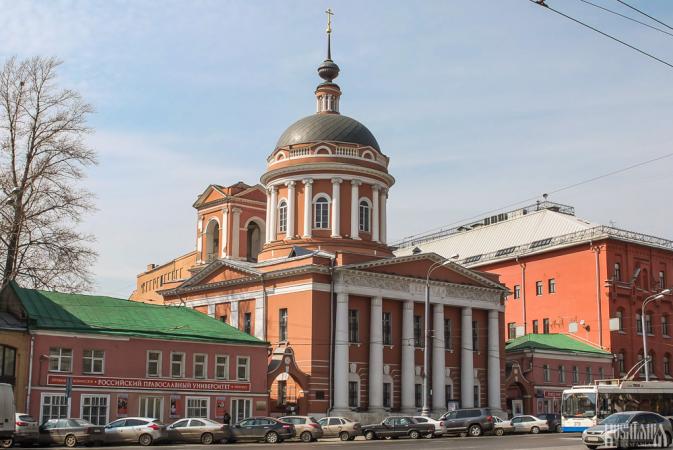 The St John the Apostle's Church gets its additional name of under the Elm ("pod vyazom") due to the fact that a great elm tree stood here up to the time of Catherine the Great. The current church was built between 1825 and 1837 in the empire style, completed with a round tower and a façade decorated with columns. The church was closed in 1925 and subsequently used to house the Moscow History Museum. The building was only returned to the Orthodox Church in 2011.