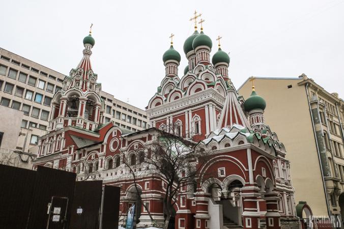 Hidden out of view among the government buildings on Staraya Ploschad is the Trinity Church in Nikitniki, which is a stunningly beautiful example of the architectural style known as Moscow Uzorochie - a Russian type of elaborate baroque. The present-day version of the church was built between 1631 and 1634. In 1920 the church was closed and transferred to the State Historical Museum, which used it as a museum of the icon painter Simon Ushakov and then of ancient painting. In 1991 the museum was closed and the building was returned to the Orthodox Church and restored.