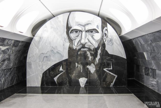 Dostoevskaya metro station is named after the author Fyodor Dostoevsky who was born in a hospital close to the metro. It was opened in 2010. Unsurprisingly the theme of this new station is the works of Dostoevsky and the walls are decorated with scenes from 'Crime and Punishment', 'The Idiot', 'Demons' and 'The Brother Karamazov' as well as of the author himself. However Doestoevsky is not known for light-hearted subjects and some people have criticised the mosaics which depict murder and suicide as being too violent and gloomy for a metro station.