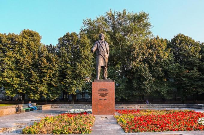 In the small gardens where Ulitsa Bolshaya Yakimanka branches off from Ulitsa Bolshaya Polyana is a statue of Georgi Dimitrov. Dimitrov was a Bulgarian communist who served as both the head of Comintern and the first Communist leader of Bulgaria. Throughout his political career Dimitrov remains a staunch ally of Stalin, however when he died in 1949 in a sanatorium outside Moscow, there were nevertheless rumours he was poisoned on the orders of the Soviet leader. This statue was unveiled after his death and Ulitsa Bolshaya Yakimanka was also renamed in his honour during the Soviet years.