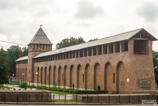 The Mokhovaya Tower stands on its own with only two small sections of walls on either side between Park Pionerov (Pioneer Park) and Ploschad Pobedy (Victory Square). During the Nazi occupation of Smolensk many Soviet citizens were lined up against this part of the wall and executed. A mass grave is now located next to the wall on the Pioneer Park side. On the other side of the wall there are metal plaques detailing the events of the Second World War.