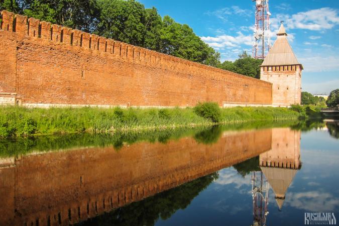 The most western stretch of the kremlin walls includes the Bubleika Tower and the Kopytenskie Gates, both of which are square in structure with wooden roofs. The Bubleika Tower takes its name from the Russian word for tambourine (buben) as percussion instruments were installed here to be beaten upon the sighting of approaching enemies. Running along this stretch of wall is part of a moat.