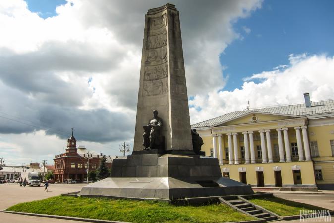 The foundations for this monument were laid in 1958 to commemorate the 850th anniversary of Vladimir (then it was considered that the city was founded in 1108). It comprises a concave three-sided obelisk with a statue on each side. The first is of an ancient warrior facing the Golden Gates, the second is of an architect facing the Dormition Cathedral and the final one is of a modern-day worker facing the industrial sector of the city.